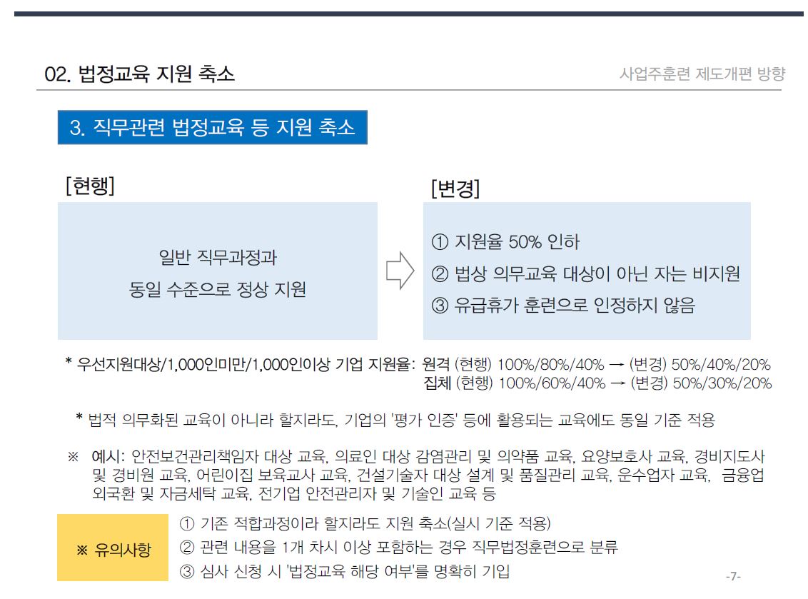 ※ 개정된 사업주훈련 지원규정에 따라