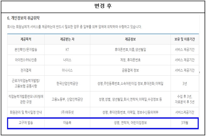[공통] 개인정보처리방침 내용 추가 안내 (2024년 03월 20일)