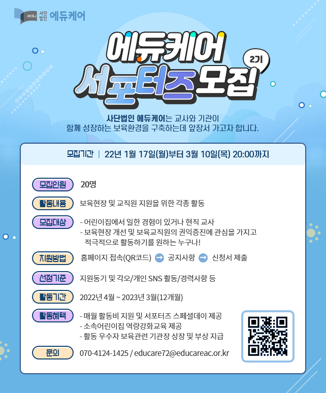 ★에듀케어 서포터즈 2기 모집안내★ 2022.02.23 |