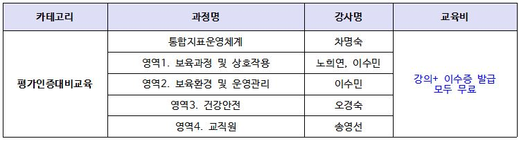 2019년 3월 최신 개정에 맞춘 “평가인증대비” 특강 오픈 안내 2019.05.01 |