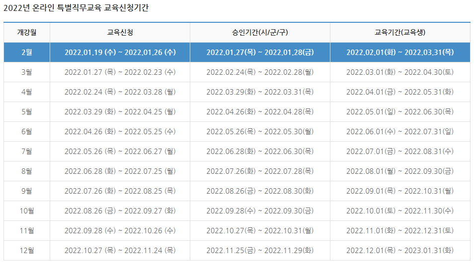 2022년 온라인특별직무교육 교육일정 안내